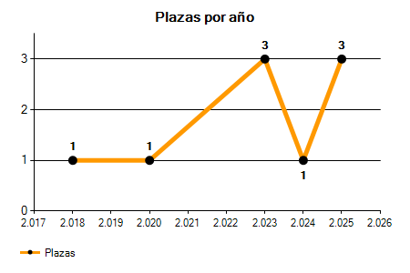 En los siguientes gráficos se puede ver la evolución del número de convocatorias y plazas convocadas para la profesión de Educador en Cantabria de los últimos años pudiéndose observar un crecimiento y una caída del 0,00% desde el año 2018 hasta el 2025 en número de convocatorias y un crecimiento del 200,00% en número de plazas convocadas.