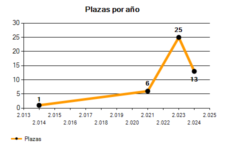 En los siguientes gráficos se puede ver la evolución del número de convocatorias y plazas convocadas para la profesión de Educador en Málaga de los últimos años pudiéndose observar una caída del 100,00% desde el año 2014 hasta el 2025 en número de convocatorias y una caída del 100,00% en número de plazas convocadas.