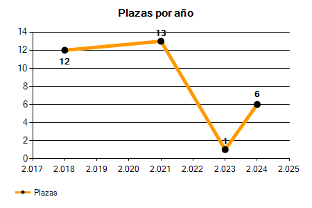 En los siguientes gráficos se puede ver la evolución del número de convocatorias y plazas convocadas para la profesión de Educador en Murcia de los últimos años pudiéndose observar una caída del 100,00% desde el año 2018 hasta el 2025 en número de convocatorias y una caída del 100,00% en número de plazas convocadas.