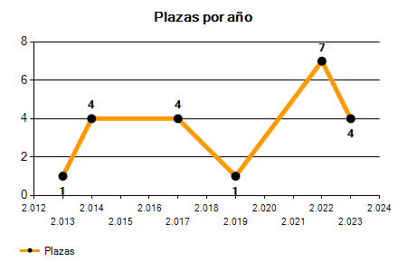 En los siguientes gráficos se puede ver la evolución del número de convocatorias y plazas convocadas para la profesión de Educador en Pontevedra de los últimos años pudiéndose observar una caída del 100,00% desde el año 2013 hasta el 2025 en número de convocatorias y una caída del 100,00% en número de plazas convocadas.