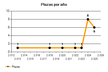 En los siguientes gráficos se puede ver la evolución del número de convocatorias y plazas convocadas para la profesión de Educador en Valencia de los últimos años pudiéndose observar un crecimiento y una caída del 0,00% desde el año 2013 hasta el 2025 en número de convocatorias y un crecimiento del 500,00% en número de plazas convocadas.