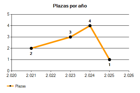 En los siguientes gráficos se puede ver la evolución del número de convocatorias y plazas convocadas para la profesión de Encargado de Mantenimiento y Obras en Jaén de los últimos años pudiéndose observar una caída del 50,00% desde el año 2021 hasta el 2025 en número de convocatorias y una caída del 50,00% en número de plazas convocadas.