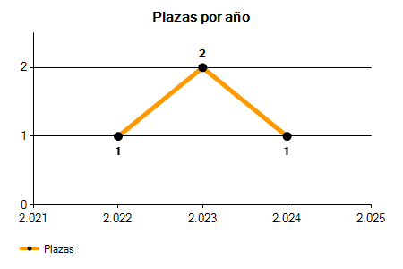 En los siguientes gráficos se puede ver la evolución del número de convocatorias y plazas convocadas para la profesión de Encargado de Mantenimiento y Obras en Zaragoza de los últimos años pudiéndose observar una caída del 100,00% desde el año 2022 hasta el 2025 en número de convocatorias y una caída del 100,00% en número de plazas convocadas.