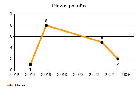 En los siguientes gráficos se puede ver la evolución del número de convocatorias y plazas convocadas para la profesión de Enfermero en Málaga de los últimos años pudiéndose observar un crecimiento y una caída del 0,00% desde el año 2014 hasta el 2025 en número de convocatorias y un crecimiento del 100,00% en número de plazas convocadas.