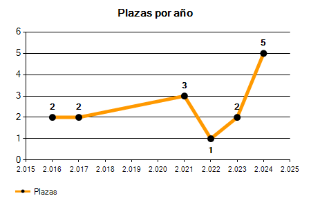 En los siguientes gráficos se puede ver la evolución del número de convocatorias y plazas convocadas para la profesión de Fontanero en Asturias de los últimos años pudiéndose observar una caída del 100,00% desde el año 2016 hasta el 2025 en número de convocatorias y una caída del 100,00% en número de plazas convocadas.
