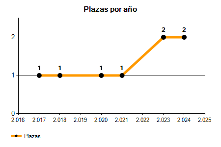En los siguientes gráficos se puede ver la evolución del número de convocatorias y plazas convocadas para la profesión de Fontanero en Badajoz de los últimos años pudiéndose observar una caída del 100,00% desde el año 2017 hasta el 2025 en número de convocatorias y una caída del 100,00% en número de plazas convocadas.