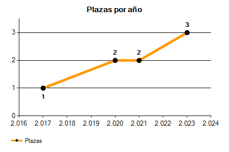 En los siguientes gráficos se puede ver la evolución del número de convocatorias y plazas convocadas para la profesión de Fontanero en Córdoba de los últimos años pudiéndose observar una caída del 100,00% desde el año 2017 hasta el 2025 en número de convocatorias y una caída del 100,00% en número de plazas convocadas.