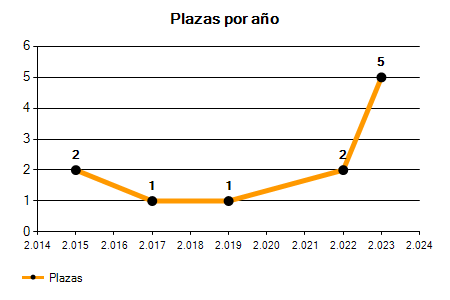 En los siguientes gráficos se puede ver la evolución del número de convocatorias y plazas convocadas para la profesión de Fontanero en Guipúzcoa de los últimos años pudiéndose observar una caída del 100,00% desde el año 2015 hasta el 2025 en número de convocatorias y una caída del 100,00% en número de plazas convocadas.
