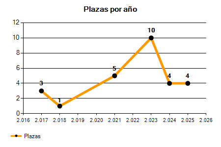 En los siguientes gráficos se puede ver la evolución del número de convocatorias y plazas convocadas para la profesión de Fontanero en Málaga de los últimos años pudiéndose observar un crecimiento del 200,00% desde el año 2017 hasta el 2025 en número de convocatorias y un crecimiento del 33,33% en número de plazas convocadas.