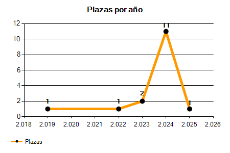 En los siguientes gráficos se puede ver la evolución del número de convocatorias y plazas convocadas para la profesión de Fontanero en Segovia de los últimos años pudiéndose observar un crecimiento y una caída del 0,00% desde el año 2019 hasta el 2025 en número de convocatorias y un crecimiento y una caída del 0,00% en número de plazas convocadas.
