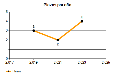 En los siguientes gráficos se puede ver la evolución del número de convocatorias y plazas convocadas para la profesión de Fontanero en Vizcaya de los últimos años pudiéndose observar una caída del 100,00% desde el año 2019 hasta el 2025 en número de convocatorias y una caída del 100,00% en número de plazas convocadas.