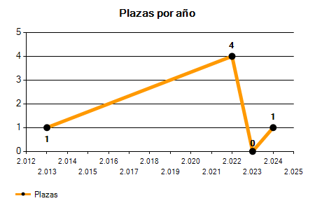En los siguientes gráficos se puede ver la evolución del número de convocatorias y plazas convocadas para la profesión de Guardia municipal en Tarragona de los últimos años pudiéndose observar una caída del 100,00% desde el año 2013 hasta el 2025 en número de convocatorias y una caída del 100,00% en número de plazas convocadas.