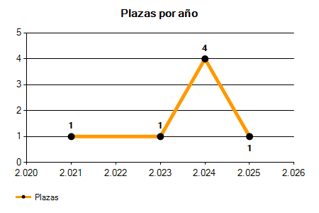 En los siguientes gráficos se puede ver la evolución del número de convocatorias y plazas convocadas para la profesión de Informador/a Juvenil en Valencia de los últimos años pudiéndose observar un crecimiento y una caída del 0,00% desde el año 2021 hasta el 2025 en número de convocatorias y un crecimiento y una caída del 0,00% en número de plazas convocadas.