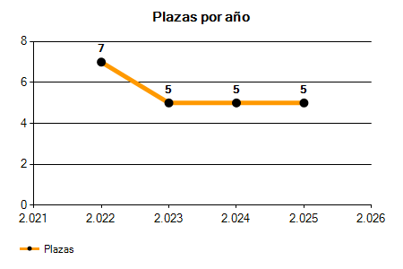 En los siguientes gráficos se puede ver la evolución del número de convocatorias y plazas convocadas para la profesión de Informador Tramitador en Madrid de los últimos años pudiéndose observar un crecimiento del 100,00% desde el año 2022 hasta el 2025 en número de convocatorias y una caída del 28,57% en número de plazas convocadas.