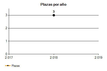 En los siguientes gráficos se puede ver la evolución del número de convocatorias y plazas convocadas para la profesión de Informador Turístico en Madrid de los últimos años pudiéndose observar una caída del 100,00% desde el año 2018 hasta el 2025 en número de convocatorias y una caída del 100,00% en número de plazas convocadas.