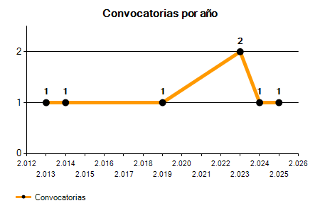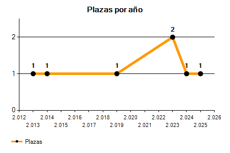 En los siguientes gráficos se puede ver la evolución del número de convocatorias y plazas convocadas para la profesión de Ingeniero industrial en Huesca de los últimos años pudiéndose observar un crecimiento y una caída del 0,00% desde el año 2013 hasta el 2025 en número de convocatorias y un crecimiento y una caída del 0,00% en número de plazas convocadas.