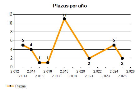 En los siguientes gráficos se puede ver la evolución del número de convocatorias y plazas convocadas para la profesión de Ingeniero industrial en Madrid de los últimos años pudiéndose observar un crecimiento del 100,00% desde el año 2013 hasta el 2025 en número de convocatorias y una caída del 60,00% en número de plazas convocadas.