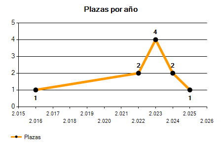 En los siguientes gráficos se puede ver la evolución del número de convocatorias y plazas convocadas para la profesión de Ingenieros de Caminos, Canales y Puertos en Huesca de los últimos años pudiéndose observar un crecimiento y una caída del 0,00% desde el año 2016 hasta el 2025 en número de convocatorias y un crecimiento y una caída del 0,00% en número de plazas convocadas.