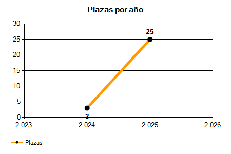 En los siguientes gráficos se puede ver la evolución del número de convocatorias y plazas convocadas para la profesión de Inspector/a de Policía Local en Murcia de los últimos años pudiéndose observar un crecimiento del 100,00% desde el año 2024 hasta el 2025 en número de convocatorias y un crecimiento del 733,33% en número de plazas convocadas.