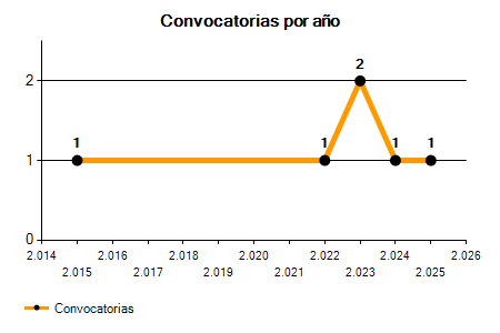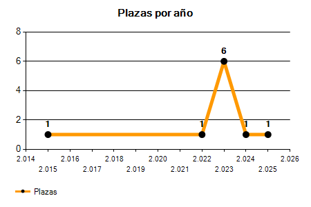 En los siguientes gráficos se puede ver la evolución del número de convocatorias y plazas convocadas para la profesión de Jardinero en Almería de los últimos años pudiéndose observar un crecimiento y una caída del 0,00% desde el año 2015 hasta el 2025 en número de convocatorias y un crecimiento y una caída del 0,00% en número de plazas convocadas.