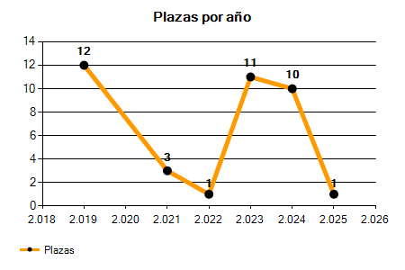 En los siguientes gráficos se puede ver la evolución del número de convocatorias y plazas convocadas para la profesión de Jardinero en Badajoz de los últimos años pudiéndose observar un crecimiento y una caída del 0,00% desde el año 2019 hasta el 2025 en número de convocatorias y una caída del 91,67% en número de plazas convocadas.