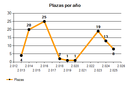 En los siguientes gráficos se puede ver la evolución del número de convocatorias y plazas convocadas para la profesión de Jardinero en Barcelona de los últimos años pudiéndose observar un crecimiento del 33,33% desde el año 2013 hasta el 2025 en número de convocatorias y un crecimiento del 100,00% en número de plazas convocadas.