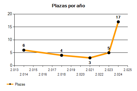 En los siguientes gráficos se puede ver la evolución del número de convocatorias y plazas convocadas para la profesión de Jardinero en Ciudad Real de los últimos años pudiéndose observar una caída del 100,00% desde el año 2014 hasta el 2025 en número de convocatorias y una caída del 100,00% en número de plazas convocadas.