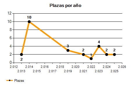 En los siguientes gráficos se puede ver la evolución del número de convocatorias y plazas convocadas para la profesión de Jardinero en Huesca de los últimos años pudiéndose observar una caída del 33,33% desde el año 2013 hasta el 2025 en número de convocatorias y un crecimiento y una caída del 0,00% en número de plazas convocadas.