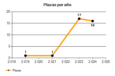 En los siguientes gráficos se puede ver la evolución del número de convocatorias y plazas convocadas para la profesión de Jardinero en Salamanca de los últimos años pudiéndose observar una caída del 100,00% desde el año 2019 hasta el 2025 en número de convocatorias y una caída del 100,00% en número de plazas convocadas.