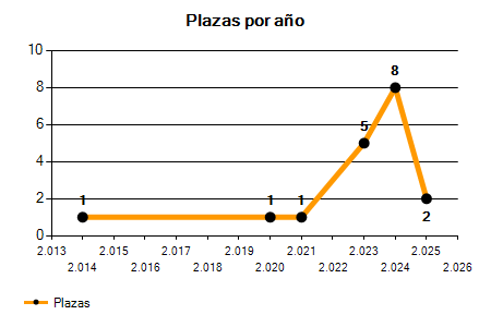 En los siguientes gráficos se puede ver la evolución del número de convocatorias y plazas convocadas para la profesión de Jardinero en Tarragona de los últimos años pudiéndose observar un crecimiento y una caída del 0,00% desde el año 2014 hasta el 2025 en número de convocatorias y un crecimiento del 100,00% en número de plazas convocadas.