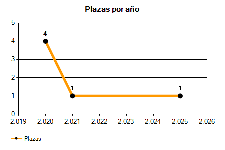 En los siguientes gráficos se puede ver la evolución del número de convocatorias y plazas convocadas para la profesión de Jefe/a de Servicios en Coruña,A de los últimos años pudiéndose observar un crecimiento y una caída del 0,00% desde el año 2020 hasta el 2025 en número de convocatorias y una caída del 75,00% en número de plazas convocadas.