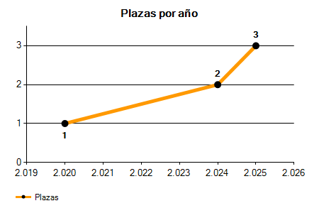 En los siguientes gráficos se puede ver la evolución del número de convocatorias y plazas convocadas para la profesión de Jefe/a de Servicios en Málaga de los últimos años pudiéndose observar un crecimiento y una caída del 0,00% desde el año 2020 hasta el 2025 en número de convocatorias y un crecimiento del 200,00% en número de plazas convocadas.