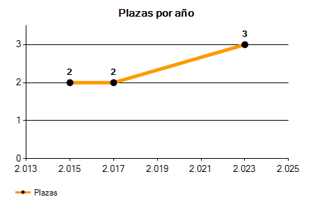 En los siguientes gráficos se puede ver la evolución del número de convocatorias y plazas convocadas para la profesión de Jefe/a de Servicios en Sevilla de los últimos años pudiéndose observar una caída del 100,00% desde el año 2015 hasta el 2025 en número de convocatorias y una caída del 100,00% en número de plazas convocadas.