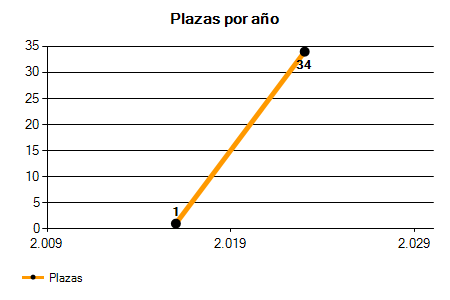 En los siguientes gráficos se puede ver la evolución del número de convocatorias y plazas convocadas para la profesión de Jefe de Negociado en Alicante de los últimos años pudiéndose observar una caída del 100,00% desde el año 2016 hasta el 2025 en número de convocatorias y una caída del 100,00% en número de plazas convocadas.