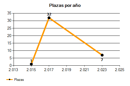 En los siguientes gráficos se puede ver la evolución del número de convocatorias y plazas convocadas para la profesión de Jefe de Negociado en Jaén de los últimos años pudiéndose observar una caída del 100,00% desde el año 2015 hasta el 2025 en número de convocatorias y una caída del 100,00% en número de plazas convocadas.