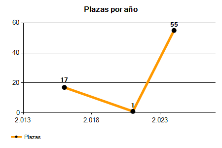 En los siguientes gráficos se puede ver la evolución del número de convocatorias y plazas convocadas para la profesión de Jefe de Negociado en Santa Cruz de Tenerife de los últimos años pudiéndose observar una caída del 100,00% desde el año 2016 hasta el 2025 en número de convocatorias y una caída del 100,00% en número de plazas convocadas.