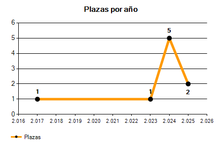 En los siguientes gráficos se puede ver la evolución del número de convocatorias y plazas convocadas para la profesión de Letrado en Alicante de los últimos años pudiéndose observar un crecimiento del 100,00% desde el año 2017 hasta el 2025 en número de convocatorias y un crecimiento del 100,00% en número de plazas convocadas.