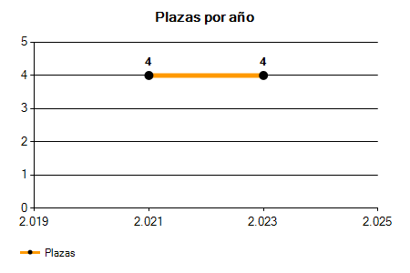 En los siguientes gráficos se puede ver la evolución del número de convocatorias y plazas convocadas para la profesión de Letrado en Almería de los últimos años pudiéndose observar una caída del 100,00% desde el año 2021 hasta el 2025 en número de convocatorias y una caída del 100,00% en número de plazas convocadas.