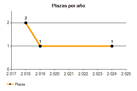 En los siguientes gráficos se puede ver la evolución del número de convocatorias y plazas convocadas para la profesión de Letrado en Murcia de los últimos años pudiéndose observar una caída del 100,00% desde el año 2018 hasta el 2025 en número de convocatorias y una caída del 100,00% en número de plazas convocadas.
