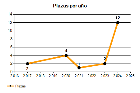 En los siguientes gráficos se puede ver la evolución del número de convocatorias y plazas convocadas para la profesión de Letrado en Sevilla de los últimos años pudiéndose observar una caída del 100,00% desde el año 2017 hasta el 2025 en número de convocatorias y una caída del 100,00% en número de plazas convocadas.