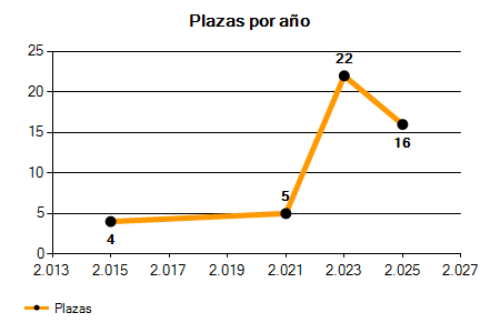 En los siguientes gráficos se puede ver la evolución del número de convocatorias y plazas convocadas para la profesión de Maestro de Educacion Primaria en Valencia de los últimos años pudiéndose observar un crecimiento y una caída del 0,00% desde el año 2015 hasta el 2025 en número de convocatorias y un crecimiento del 300,00% en número de plazas convocadas.