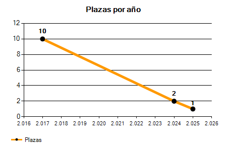 En los siguientes gráficos se puede ver la evolución del número de convocatorias y plazas convocadas para la profesión de Maquinista en Palmas,Las de los últimos años pudiéndose observar un crecimiento y una caída del 0,00% desde el año 2017 hasta el 2025 en número de convocatorias y una caída del 90,00% en número de plazas convocadas.