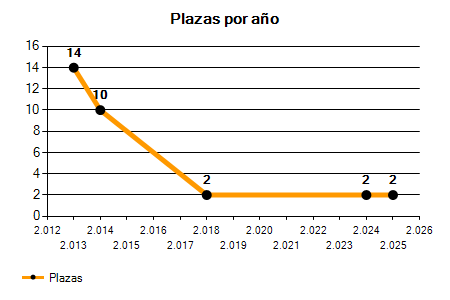 En los siguientes gráficos se puede ver la evolución del número de convocatorias y plazas convocadas para la profesión de Mecánico conductor en Albacete de los últimos años pudiéndose observar un crecimiento del 100,00% desde el año 2013 hasta el 2025 en número de convocatorias y una caída del 85,71% en número de plazas convocadas.