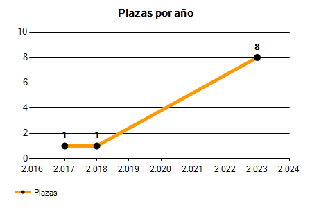 En los siguientes gráficos se puede ver la evolución del número de convocatorias y plazas convocadas para la profesión de Mecánico conductor en Córdoba de los últimos años pudiéndose observar una caída del 100,00% desde el año 2017 hasta el 2025 en número de convocatorias y una caída del 100,00% en número de plazas convocadas.