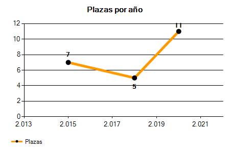 En los siguientes gráficos se puede ver la evolución del número de convocatorias y plazas convocadas para la profesión de Mecánico conductor en Valladolid de los últimos años pudiéndose observar una caída del 100,00% desde el año 2015 hasta el 2025 en número de convocatorias y una caída del 100,00% en número de plazas convocadas.