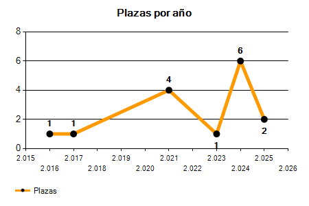 En los siguientes gráficos se puede ver la evolución del número de convocatorias y plazas convocadas para la profesión de Medicina del Trabajo en Madrid de los últimos años pudiéndose observar un crecimiento y una caída del 0,00% desde el año 2016 hasta el 2025 en número de convocatorias y un crecimiento del 100,00% en número de plazas convocadas.
