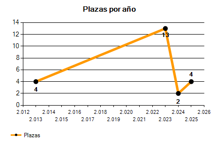 En los siguientes gráficos se puede ver la evolución del número de convocatorias y plazas convocadas para la profesión de Monitor en Badajoz de los últimos años pudiéndose observar un crecimiento y una caída del 0,00% desde el año 2013 hasta el 2025 en número de convocatorias y un crecimiento y una caída del 0,00% en número de plazas convocadas.