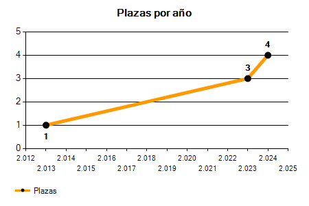 En los siguientes gráficos se puede ver la evolución del número de convocatorias y plazas convocadas para la profesión de Monitor en Castellón de la Plana de los últimos años pudiéndose observar una caída del 100,00% desde el año 2013 hasta el 2025 en número de convocatorias y una caída del 100,00% en número de plazas convocadas.