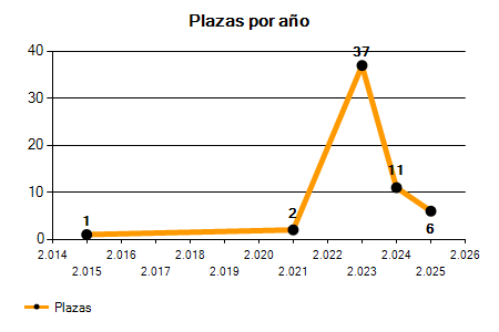 En los siguientes gráficos se puede ver la evolución del número de convocatorias y plazas convocadas para la profesión de Monitor en Málaga de los últimos años pudiéndose observar un crecimiento del 200,00% desde el año 2015 hasta el 2025 en número de convocatorias y un crecimiento del 500,00% en número de plazas convocadas.