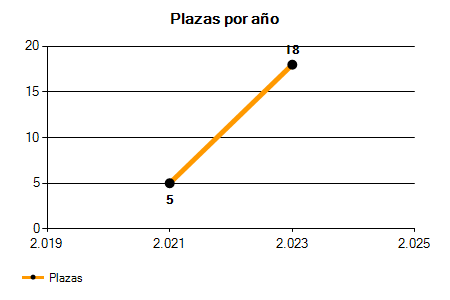En los siguientes gráficos se puede ver la evolución del número de convocatorias y plazas convocadas para la profesión de Músico en Coruña,A de los últimos años pudiéndose observar una caída del 100,00% desde el año 2021 hasta el 2025 en número de convocatorias y una caída del 100,00% en número de plazas convocadas.